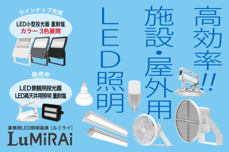 あらゆる業務の場を高演色・高効率・低価格で明るく照らすLED 照明器具をはじめ、高い技術力を誇る国内工場で製造され特別な空間を演出するLED照明器具などをラインナップに加え、今後も様々なお客様のご要望にお答えすべく新たな製品の開発製造に取り組んでまいります。