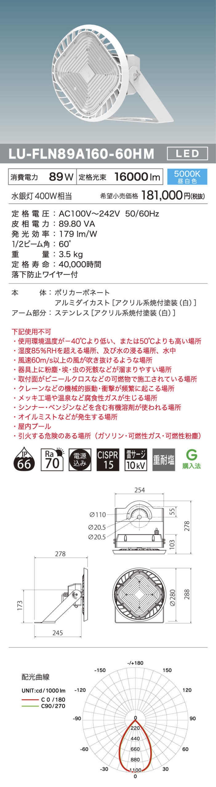LU-FLN89A160-60HL【重耐塩】※生産終了