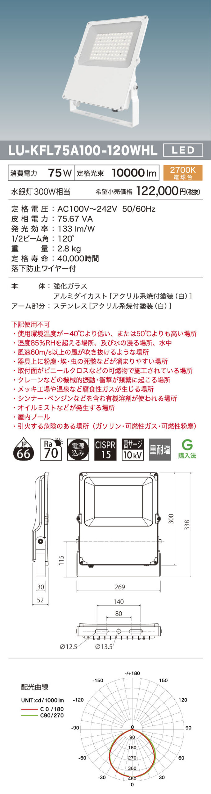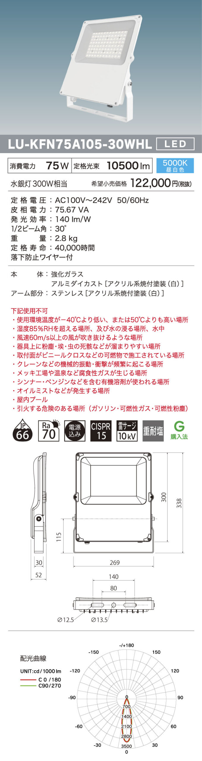 75W型LED小型投光器 / 昼白色水銀灯300W相当製品概要製品概要